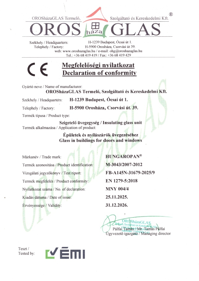 HUNGAROPÁN Megfelelőségi Nyilatkozat_Declaration of conformity