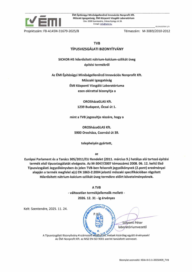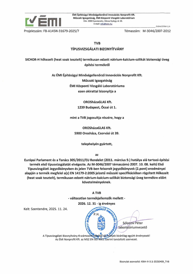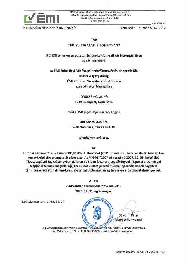 SICHOR  ÉMI TIPUSVIZSGÁLATI BIZONYÍTVÁNY