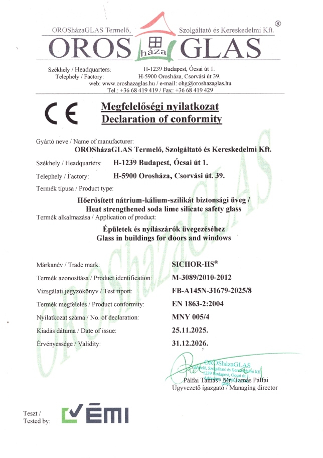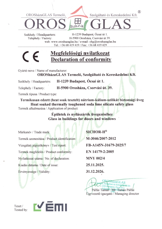 SICHOR Megfelelőségi Nyilatkozat_Declaration of conformity