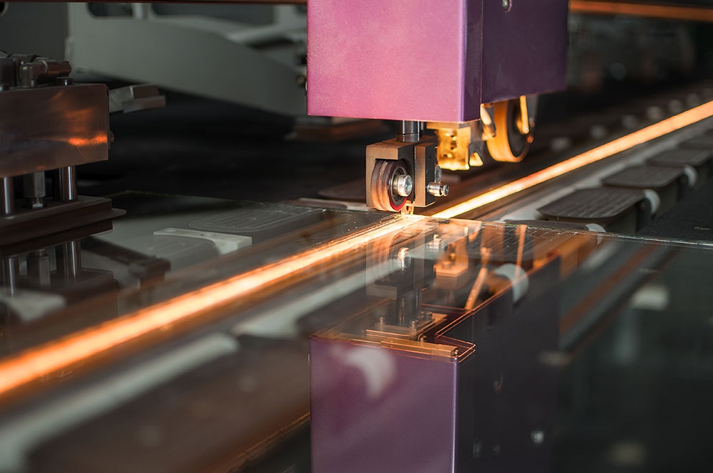 A síküveg megmunkálási fázisának első állomása. Automata vágósorokról kerülnek le a nagy méretpontosságú egyrétegű és laminált üvegek.